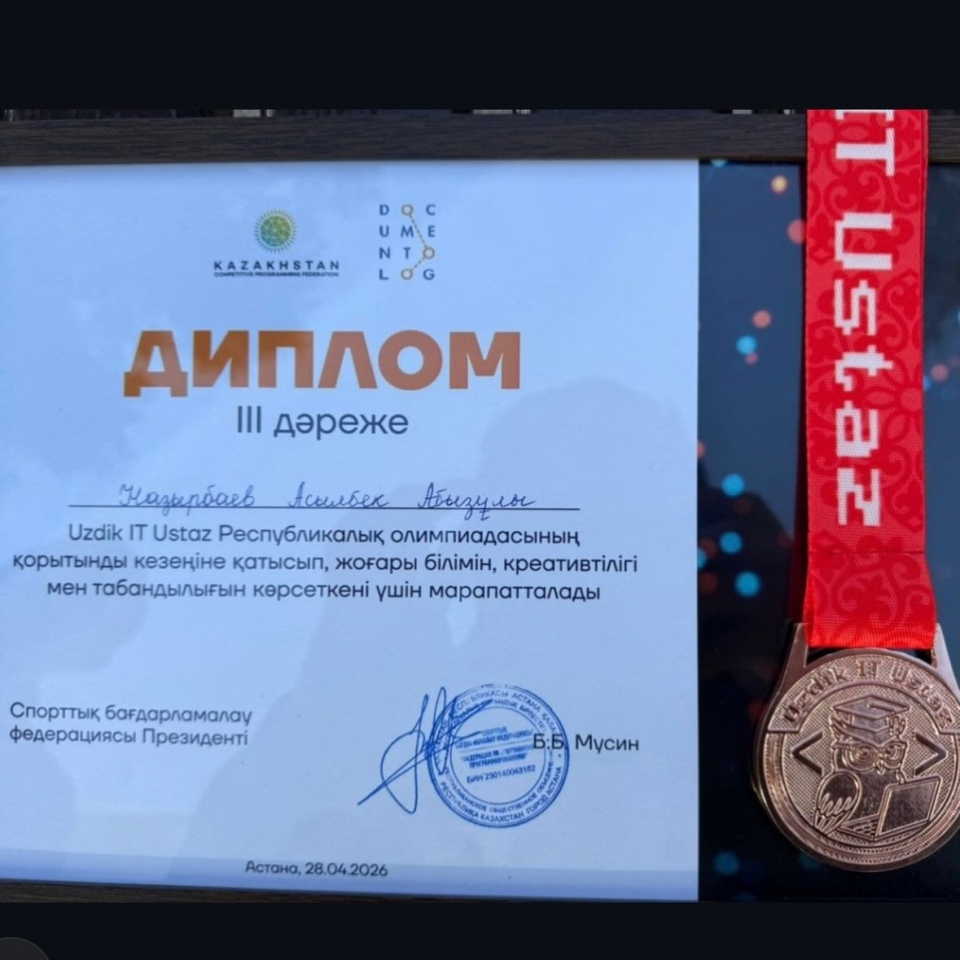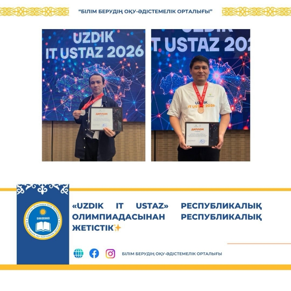 2026 жылдың 27–29 сәуір күндері аралығында Астана қаласында информатика пәні мұғалімдерінің олимпиадалық тапсырмалар бойынша білімін тереңдету және кәсіптік бағдар беру бағытындағы қызығушылығын арттыру мақсатында өткен «Uzdik IT Ustaz» республикалық олимпиадасында Маңғыстау облысының педагогтері жүлделі орындарға ие болды.